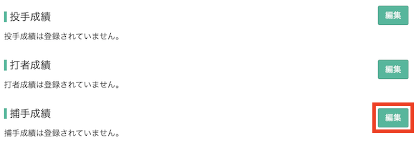 詳細画面の下部にある捕手成績のリンクから成績編集画面を開きます。
