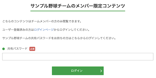 チームホームページ内にあるメンバー限定コンテンツのページを開きます。
